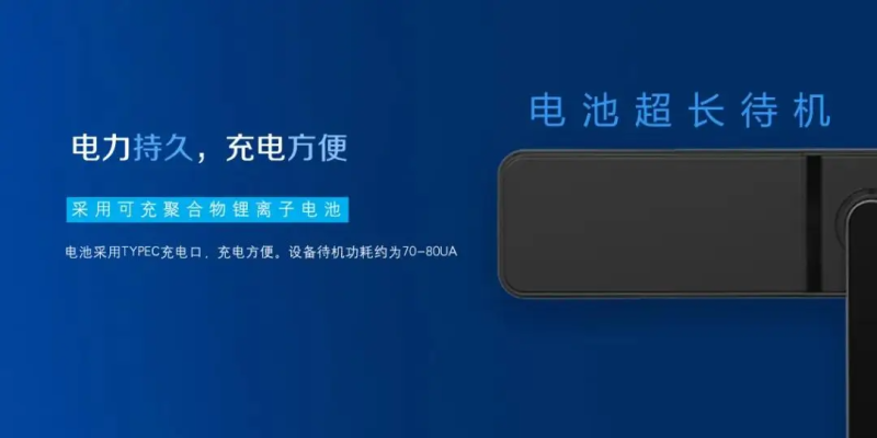 天诚WiFi人脸物联网锁系列产品搭载无限次可循环充电锂电池,支持WiFi4、WiFi6双重网络协议,电压稳、功耗低、待机长,理论条件下满电续航达8至10个月,平均一年充1-2次电。此外,WiFi人脸物联网锁还具有“市电有线+锂电池”双重供电制式,无需更换电池,在满足人才公寓人脸物联网锁用电需求的同时,减少运维成本,降低运维难度,增强门锁系统的稳定性,真正意义上实现了“永不断电”。