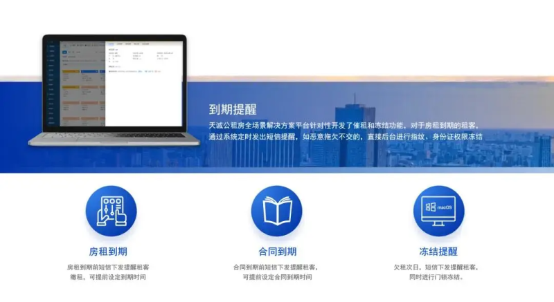 天诚人才公寓管理系统支持房源信息、房间信息、合同信息、财务信息、设备信息、服务信息及待办事项集中可视化展现,便于管理者一屏统揽人才公寓运营全貌。人才公寓管理系统还具有跨区域公寓管理、房型管理、房间管理等功能,便于物业管理者掌握辖区内房源动向。人才公寓管理系统还能够与社保、公积金、税务、住建监管、民政(低保优抚)、学信网等系统无缝对接,立体勾勒、精准比对准住户资质,切实保障青年人才群体住房权益,利于合理分配住房资源,成为人才公寓规范化运营的重要支撑。管理员通过人才公寓管理系统能够批量或单一的灵活进行住户资质审核、结果公示、房源分配及入住办理、资产登记、售后服务工单审批、租金及水电费收(催)缴、退租办理,实现人才公寓运营降本增效。