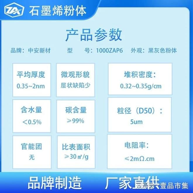1000ZAP6石墨烯粉体是中安新材料(深圳)有限公司通过独家研发的流体技术制备生产的高纯度石墨烯粉体,材料性能参数远超同业水平。平均厚度为0.35~2 nm,平均粒径(D50)为5μm,层数在3~8层,外观缺陷少,产品稳定性高,年产能达10吨。