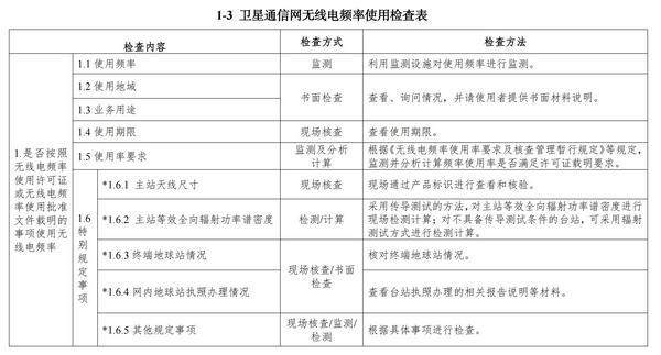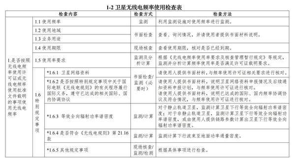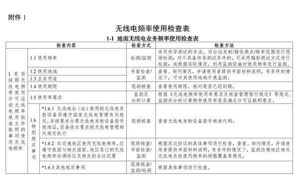 地面无线电业务频率使用、卫星无线电频率使用和卫星通信网无线电频率使用的检查内容参见附件1。