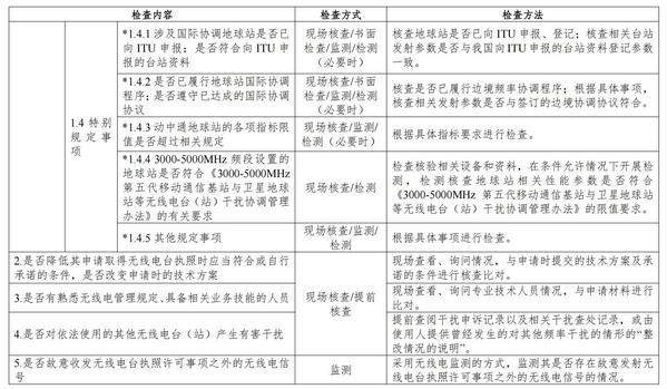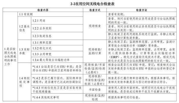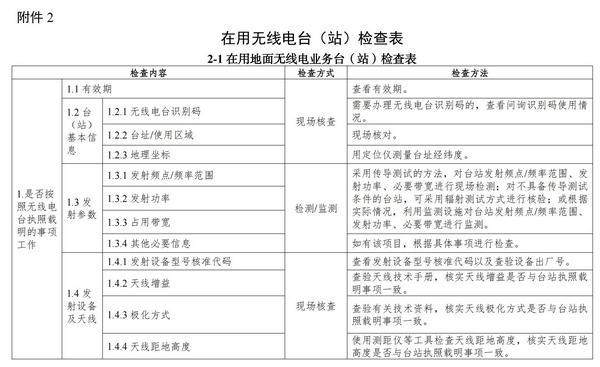 地面无线电业务台(站)、空间无线电台和卫星地球站的检查内容参见附件2。