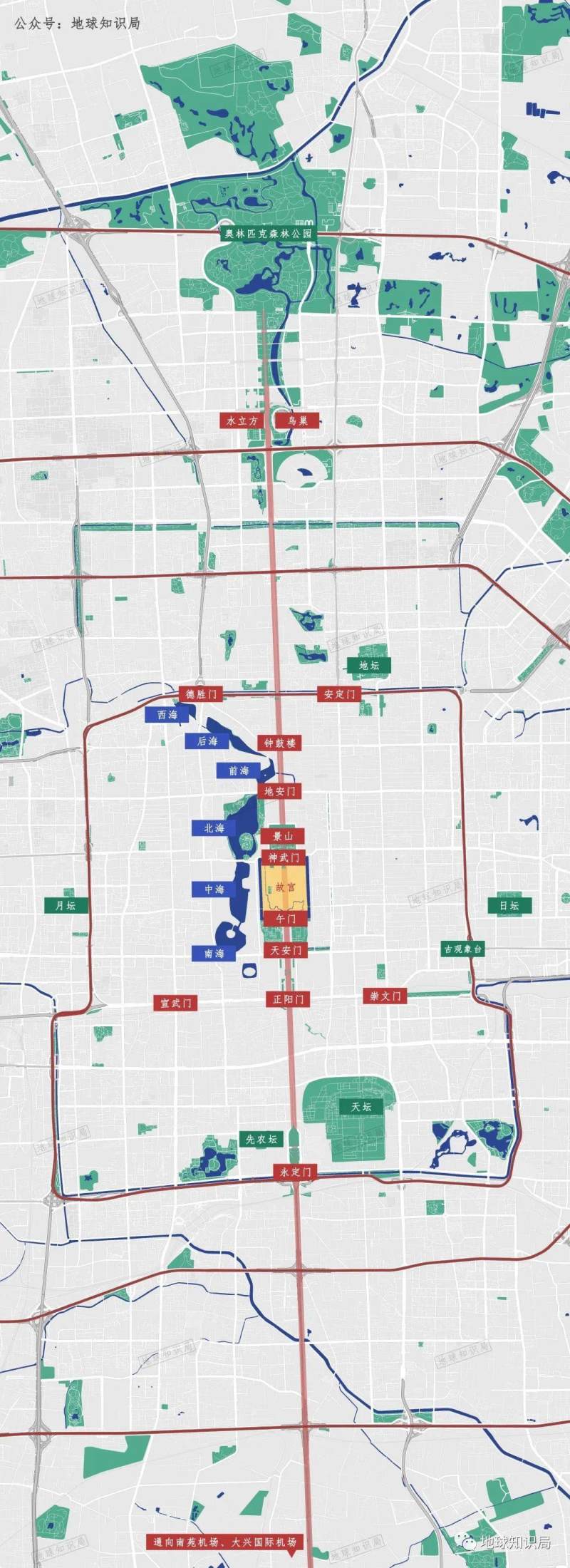 如今,即使北京城区远大于古代,中轴线仍然肉眼可见
