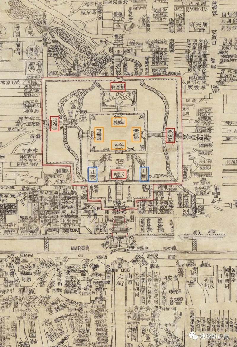 除了星象所映射出的“秩序”理念,中华民族自古传承的一些营国理念,也在中轴线上展现地淋漓尽致。比如出自《周礼》的“左祖右社”,是源于先秦时代原始宗教的祭祀礼仪——在宫殿的左前方祭祀祖先、右前方祭祀土地神和粮食神。