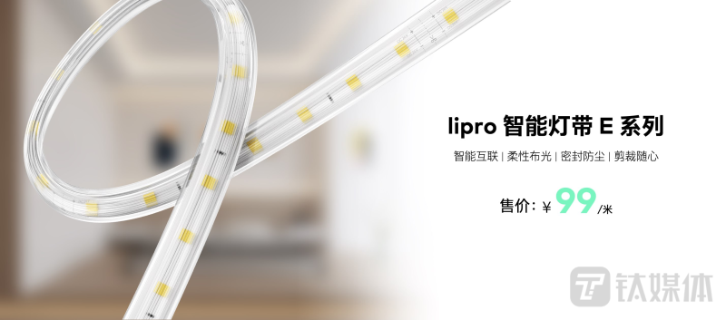随着 lipro 产品线的丰富,全新的产品线标识—— S、E、A产品体系也正式启用,S系列定位旗舰级产品线,E系列定位专业级产品线,A系列将作为入门级产品线。此外,lipro首款E系列产品 —— lipro E系列 LED 灯带正式亮相,每米lipro E系列LED灯带可提供950lm光通量,售价为99 元/米。