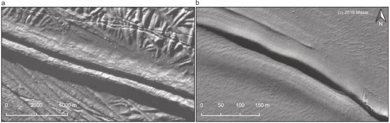 研究人员在格陵兰西北部的冰盖中发现了一个相似的双脊,其几何结构和木卫二上的双脊一样。为了了解格陵兰双脊的形成过程,他们利用地表高程和雷达探测数据,发现它是在冰盖内一个很浅的水体经过重新冻结、加压、断裂的一连串过程之后形成。