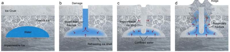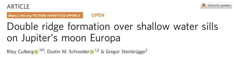 研究团队认为,如果这也是木卫二上双脊的形成过程,那么它或许象征着木卫二的冰壳中也存在很浅的液态水。他们总结道,这项研究结果表明,浅水体的作用对于木卫二表面形貌的影响可能比之前认为的更大。论文链接:https://www.nature.com/articles/s41467-022-29458-3