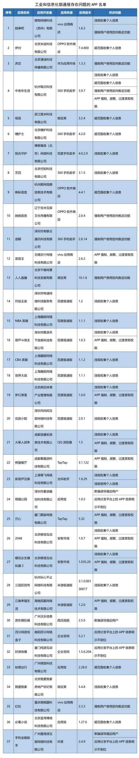 【通信产业网讯】依据《个人信息保护法》《网络安全法》《电信条例》《电信和互联网用户个人信息保护规定》等法律法规,工信部近期组织第三方检测机构对移动互联网应用程序(APP)进行检查。截至目前,尚有37款APP未完成整改。