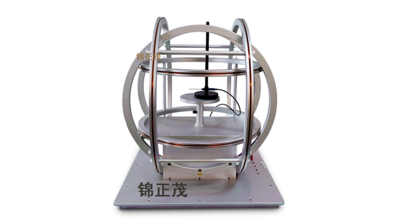三维亥姆霍兹线圈可产生三方向磁场,可用于永磁体磁偏角测量,磁场分别实现X、Y、Z轴向磁场,一般每轴磁场较低。特别适用于产生标准磁场、地球磁场的抵消与补偿、地磁环境模拟、磁屏蔽效果的判定、电磁干扰模拟实验、霍尔探头和各种磁强计的定标、生物磁场的研究及物质磁特性的研究。
