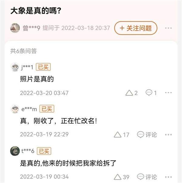 不过鉴于这是大象,没有哪家快递小哥愿意把它扛上没有电梯的6楼,包邮只能包干粮,剩下的路都得靠它自己走。
