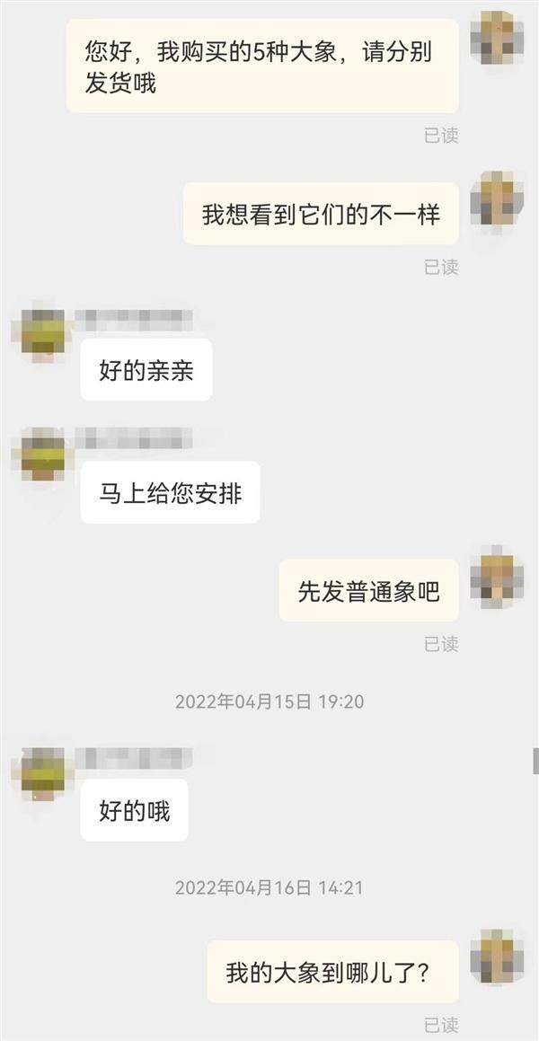 没有人催促大象快些赶路,买家只是象征性地问上一句“我的大象到哪儿了”。