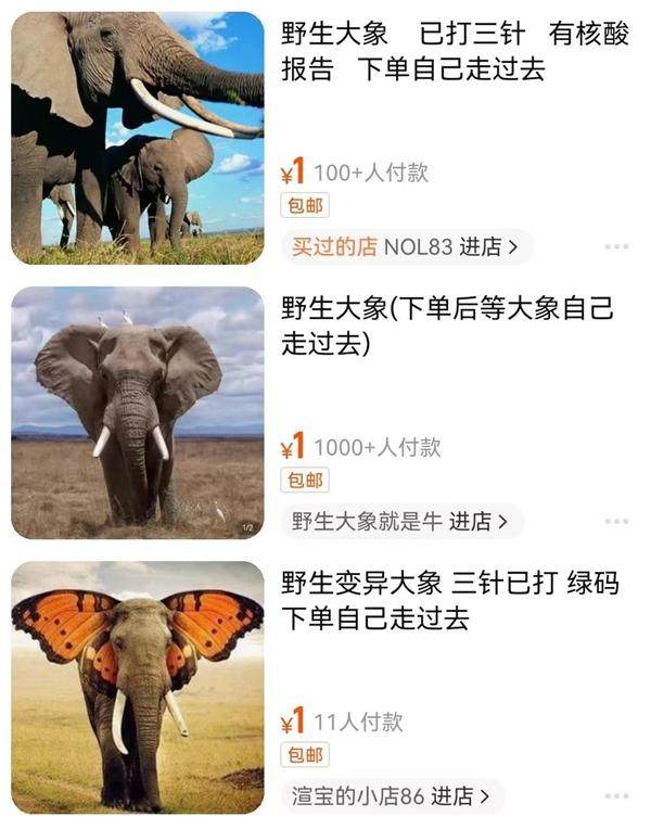 也许正是有此渊源,才让试图卖点儿什么沙雕动物的卖家,第一个想到了大象。但具体是否牵强附会,已无从考证。