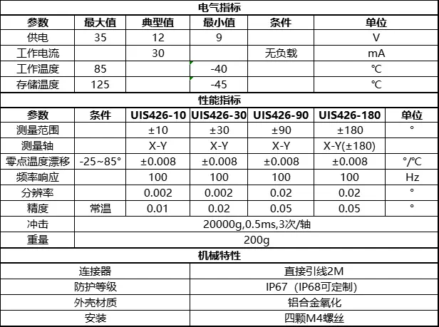UIS426是针对工业现场控制领域研发的一款数字输出型双轴倾角传感器(动态倾角传感器),接口可选RS485,RS232,TTL或CAN总线,产品输出速度能达到100次/秒。产品属于工业级,性能可靠稳定,扩展性好,适合应用于各种恶劣工业控制环境。