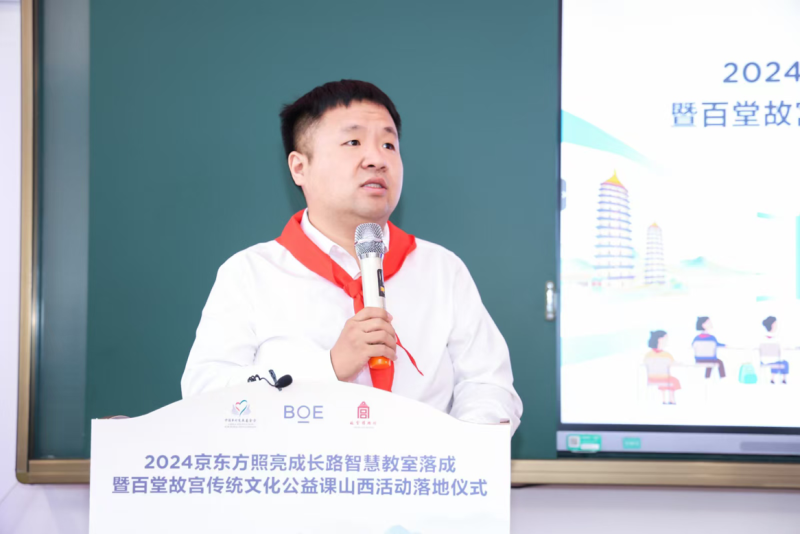 2024年9月20日,BOE(京东方)“照亮成长路”智慧教室落成暨百堂故宫传统文化公益课山西活动落地仪式在山西省太原市娄烦县实验小学隆重举行。自“照亮成长路”教育公益项目正式设立以来,BOE(京东方)持续以创新科技赋能偏远地区的教育升级,随着2024年捐赠的23间智慧教室全面圆满竣工并正式投入使用,BOE(京东方)捐建的智慧教室总数已达126间,它们不仅代表了教育创新、文化传承与先进技术的融合,也开启了BOE(京东方)面向新三十年发展征程、积极践行企业社会责任的新起点。