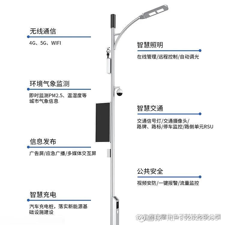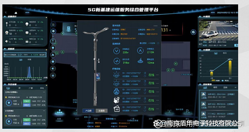 据了解盾华电子智慧路灯不仅具备普通路灯的照明功能灯杆上面还安装了5G基站摄像头液晶显示屏和灯箱等集城市实时视频信号通讯智能充电多功能于一体和普通的灯杆相比5G智慧灯杆还可以安装摄像头LED屏WiFi温湿度传感器风向传感器智能节电控制器未来还能支持充电桩无人机停机坪等承载多种5G创新智慧应用功能