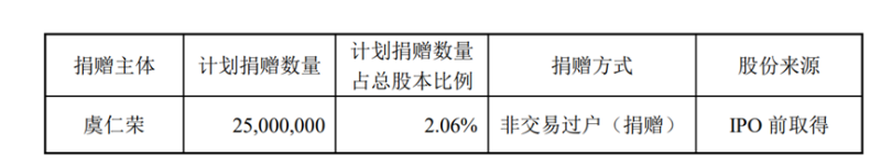 以10月11日韦尔股份111.95元的收盘价计算,虞仁荣此次捐赠股份的市值约为28亿元。在此之前,虞仁荣已三次捐赠其持有的公司股份,用于宁波东方理工大学的筹办;加上此次捐赠的股份,虞仁荣已累计捐赠6000万股公司股份,占公司目前总股本的2.06%。