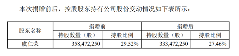 韦尔股份表示,本次捐赠股份计划的实施不会导致公司控制权发生变化,不会对公司治理结构、股权结构及持续经营产生影响。