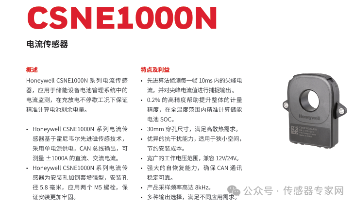 中国庞大的工业基础和市场,也带动了上下游高科技零部件产业的发展,包括CSNE 1000系列电流传感器在内,霍尼韦尔多款新型新能源汽车及储能用电流传感器的研发和量产,均由中国团队完成,在中国市场推广、验证。