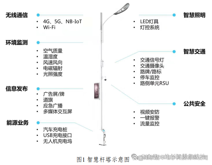 5. 功能集成与可扩展性强:支持集成多种功能模块、智慧城市系统等,支持视频监控设备、环境监测传感器、信息发布屏、充电桩等多种设备。