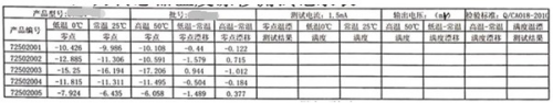 通过以上压焊工作后,对传感器自身参数进行测试,其温度漂移实测表如表一。