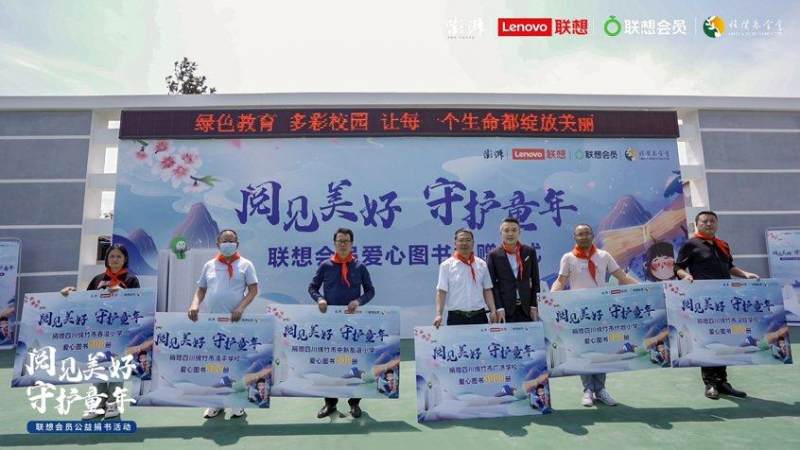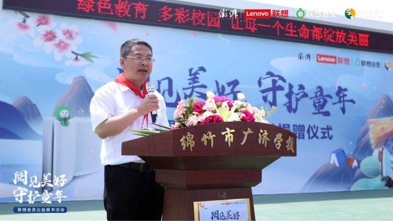 此次“阅见美好 守护童年”公益捐书活动由联想中国客户管理中心联合桂馨慈善基金会共同发起,澎湃新闻媒体支持,活动捐赠仪式在四川绵竹广济镇学校举行。四川省德阳市绵竹市委教育工委书记、局党组书记、局长刘强、联想中国西南大区总经理李刚、绵竹市师培中心主任胡克明、绵竹市广济学校校长罗元勇、五位绵竹辖区乡镇学校校长出席了本次捐赠仪式。