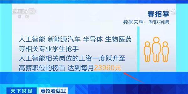 但是人工智能、新能源汽车、半导体、生物医药等相关专业的学生却非常抢手,其中人工智能相关岗位的工资一度跃升至高薪职位的榜首,达到每月23960元。
