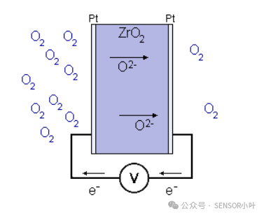 2. 二氧化锆表现得像一种电解质。如果在一块二氧化锆的两侧存在两种不同的氧压