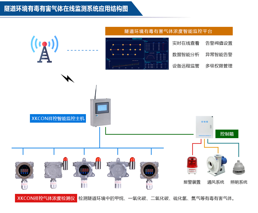 通过XKCON祥控隧道运营环境有毒有害气体浓度在线监测系统实现全时效、全方位综合监测,实时掌握隧道内部环境有害气体浓度变化情况,及时发现危险源并进行应急处理,及时消除隐患,防止出现隧道运营中有害气体超标的危急情况,确保人员、车辆和隧道工程的安全。