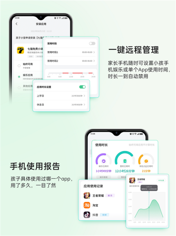 奇少年学生手机的防沉迷系统非常新颖且强大,操作也非常简单。家长能有效管理的同时,也给了孩子足够的娱乐弹性,让孩子可以更加劳逸结合,以约定代替管控的形式极大促进了亲子关系的和谐。