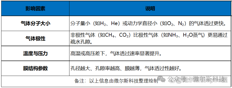 几乎所有气体都能透过ePTFE膜,但透过速率和选择性因以下因素而异: