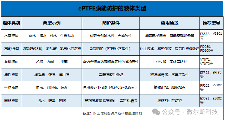 ePTFE(膨体聚四氟乙烯)膜因其独特的化学稳定性和微孔结构,昨天也分享了一文读懂ePTFE膜独特的微孔结构如何让气体透过?我们今天一起来聊聊ePTFE(膨体聚四氟乙烯)膜微孔结构能够防护哪些液体,其防渗透能力和适用液体范围如何?