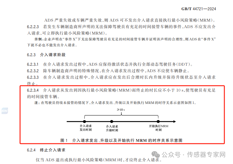 根据2024年9月发布实施的智能网联汽车自动驾驶系统通用技术要求国家标准《GB/T 44721—2024》显示,要实现L3级自动驾驶,要求智驾系统如果遇到无法处理的异常需要驾驶员介入,硬性规定至少提前10S发出介入请求。