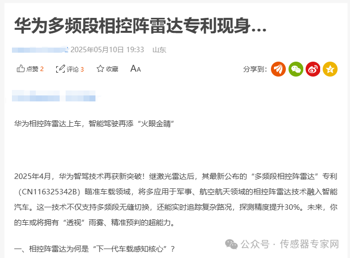 该问题引发市场的反响,华为将相控阵雷达这个“雷达之王”放到车上了?