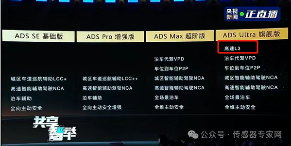为了实现高速L3方案,华为用上了多种传感器技术,多达36个高精度传感器,包括:1 个 192 线激光雷达、3 个高精度固态激光雷达、3 分布式 4D 毫米波雷达矩阵、2 个 4D 毫米波角雷达、12 个超声波雷达、11 个高清摄像头、4 个车外麦克风等。
