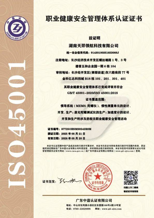 近期,湖南天羿领航科技有限公司顺利通过了ISO 14001环境管理体系和ISO 45001职业健康安全管理体系的认证审核。这标志着公司在环境管理和职业健康安全管理方面达到了国家标准,展现了公司对可持续发展的承诺和对员工健康的关怀。