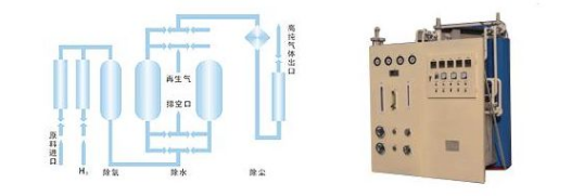 过去也曾有人研究过用氧化亚铜催化剂从水中制取氢气的方法,但在实验中氧化亚铜在阳光的作用下很容易还原成金属,因此依靠先进的PSA变压吸附原理,通过吸附塔内的吸附剂在一定压力下对不同气体的吸附能力不同,从而从氨分解混合气中分离出高纯度的氢气的制氢机赢得了工业生产者的青睐。