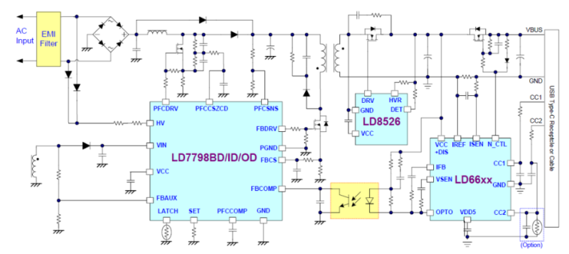 基于Lead trend _LD7798 + LD8526+ LD6612应用于USB PD3.0 Type-C 100W适配器设计方案