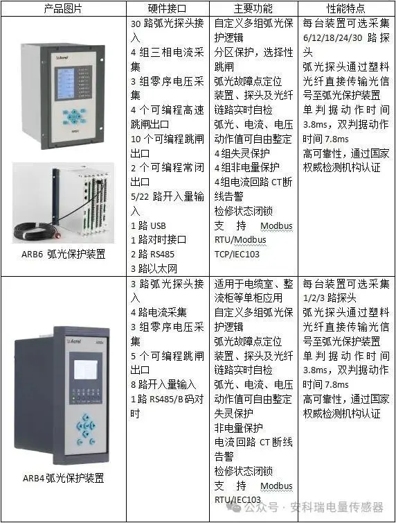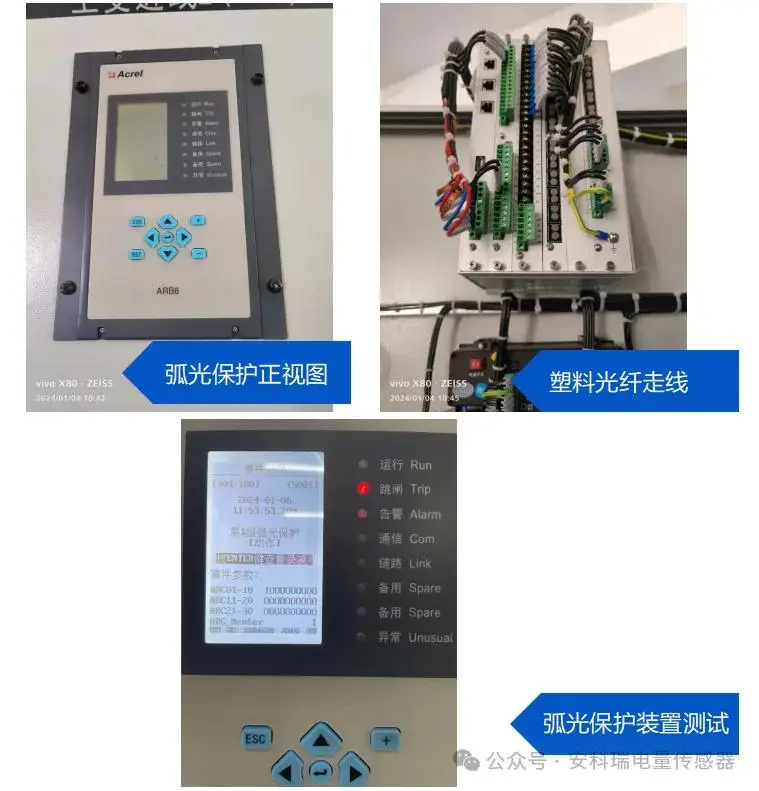 在I段母线、II段母线分别配置1台ARB6弧光保护装置,每面馈线柜分别配置1台ARB4弧光保护装置,每面柜子的母线室、手车室、电缆室各安装1个ARB-S弧光探头。