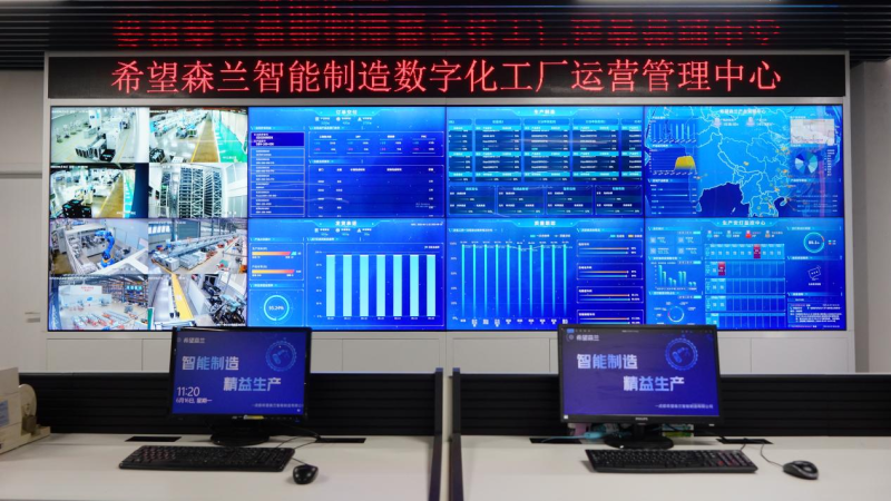 智能工厂绝非简单的“机器换人”,其核心在于以物联网(IoT)、人工智能(AI)、大数据等先进技术为底座,深度融合设计、生产、物流、服务全链条,通过数据驱动实现柔性生产与资源优化配置。希望森兰实施的数字化工厂系统,成功构建了节能与传动控制、PLC、新能源与智能装备等制造链集群,有效协同上下游企业,实现了全面的提质增效。