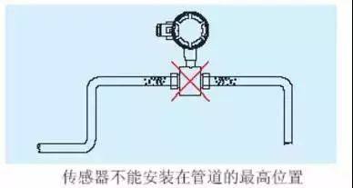 传感器不能安装在管道的最高位置,这个位置容易积聚气泡。