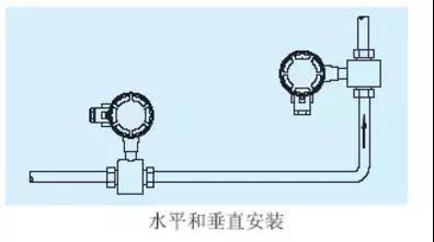 流量计可以水平和垂直安装,但是应该确保避免沉积物和气泡对测量电极的影响,电极轴向保持水平为好。垂直安装时,流体应自下而上流动。