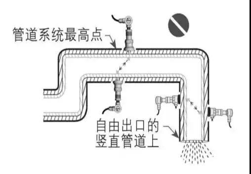 3.避免安装在管道系统的最高点或带有自由出口的竖直管道上。