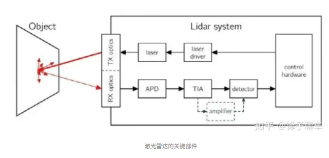 典型激光雷达LiDAR系统组成括激光发射光源、接收器、伺服电机、斜面镜和光学旋转编码器(又称圆光栅)。