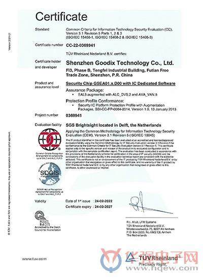 4月27日消息,近日,汇顶科技首款eSE(embedded Security Element)芯片一次性通过全球安全领域高等级的SOGIS CC EAL5+安全认证,标志着汇顶科技面向智能终端和物联网应用倾力打造的安全芯片达到全球一流安全水准,将加速其商业化应用进程。