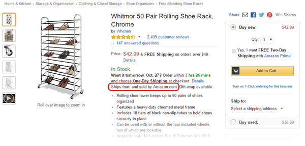 自2011年亚马逊大力推广Prime会员体系以来,第三方卖家发现为了使商品符合Prime资格,注册并使用FBA成了必要条件。不仅如此,多家外媒曾披露,亚马逊平台的黄金购物车(Buy box)算法中嵌入了对FBA卖家的偏好,这意味着使用FBA与否,直接关系到商品在平台获取的流量多少。