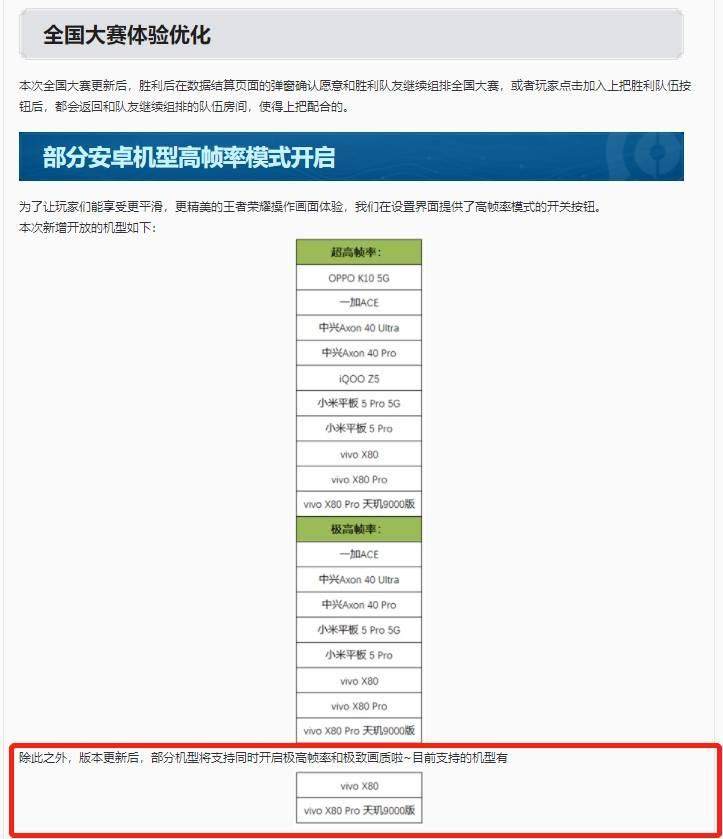 对于喜爱《王者荣耀》的玩家来说,今天还有一个好消息。根据《王者荣耀》官网公布的消息,玩家们已经可以可以同时开启“极高帧率”和“极致画质”选项了,不过首批支持机型仅有刚发布不久的vivo X80和vivo X80 Pro天玑9000版。