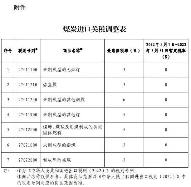 本文标题:2022年5月1日-2023年3月31日,煤炭进口暂定税率为零