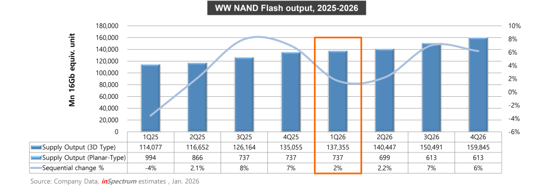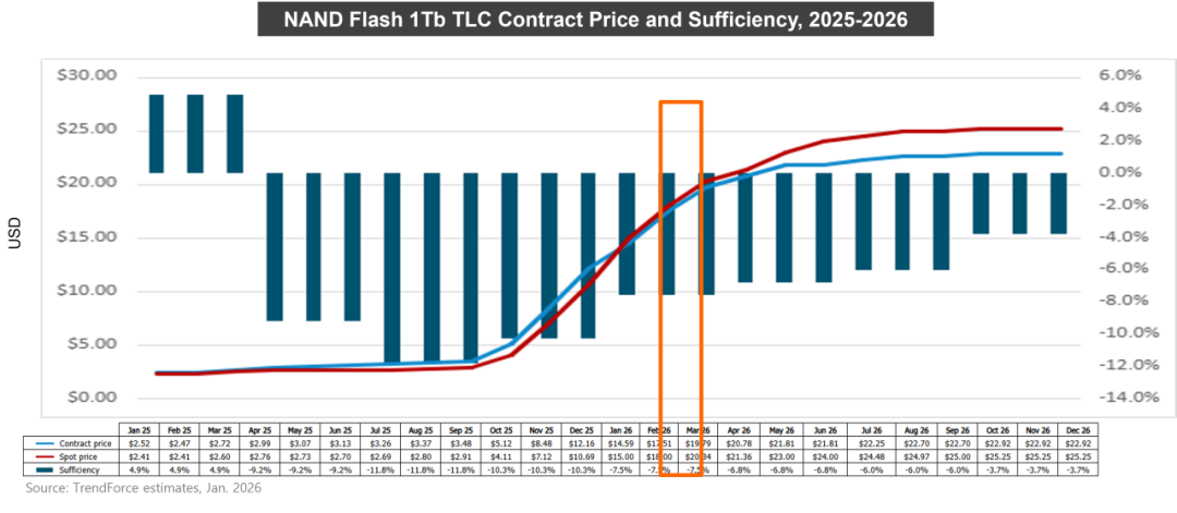 ■ 价格走势:在人工智能基础设施扩张和服务器升级的推动下,随着企业和云服务提供商(CSP)需求激增,NAND闪存的整体价格在25年第四季度大幅上涨。预计2026年市场状况将继续,NAND闪存价格将维持在较高水平。