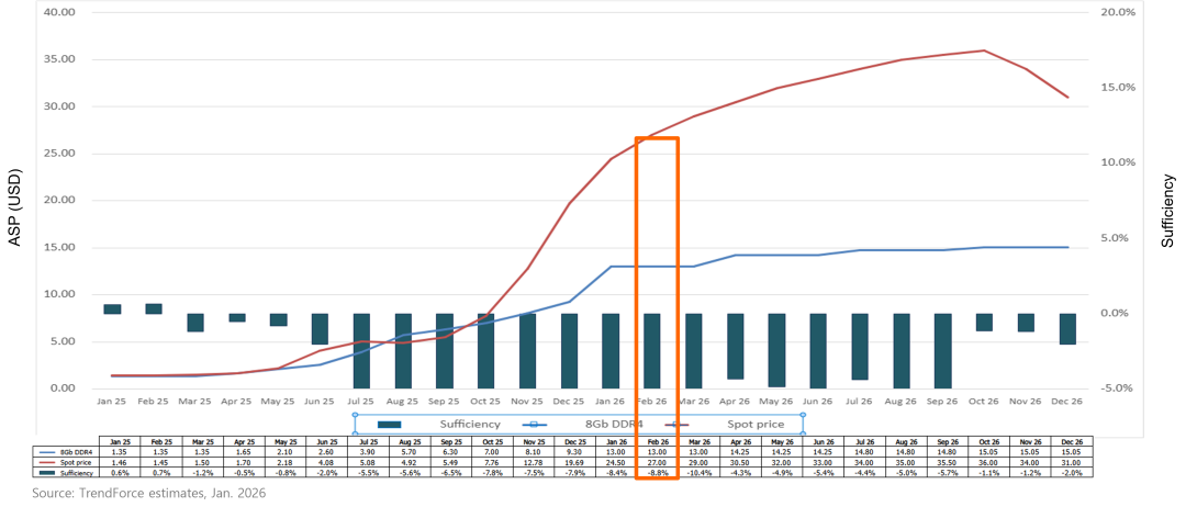 ■ 满足率:自2025年第二季度以来,随着制造商逐步淘汰DDR4生产,并将产能重新分配给CSP的高需求应用,供应面临巨大压力。这一转变导致DRAM整体可用性明显收紧。
