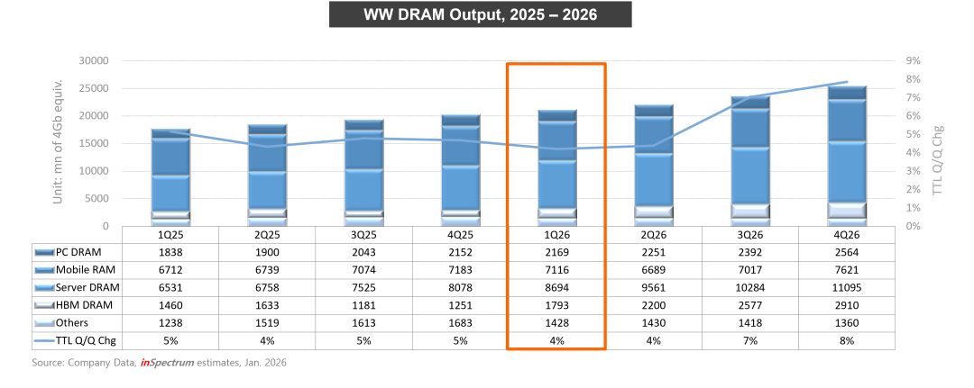 DRAM产能正由服务器与移动设备的强劲需求驱动。分析师预测,至2026年,市场对先进制程DRAM的需求将持续攀升。