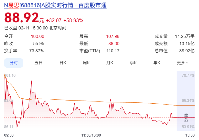 2月11日,易思维登陆上海证券交易所科创板,成为A股又一家传感器产业链上市公司。截止当日收盘,易思维报88.92亿元/股,市值88.92亿元,涨幅达58.93%!